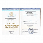 2019 г. — Клиническая ординатура по специальности ортодонтия на базе Института стоматологии последипломного образования г. Санкт-Петербург. Под руководством доктора медицинских наук, профессора, заведующего кафедрой ортодонтии Фадеева Романа Александровича.